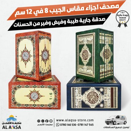 مصحف اجزاء مقسم 30 جزء مع حقيبة حجم كبير ، ختمة القرآن كامل ،متعدد الالوان ، باللغة العربية ، مقاس (8*12 ، 14*20 ، 17*24 ، 25*35)