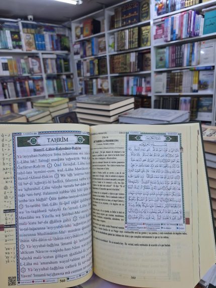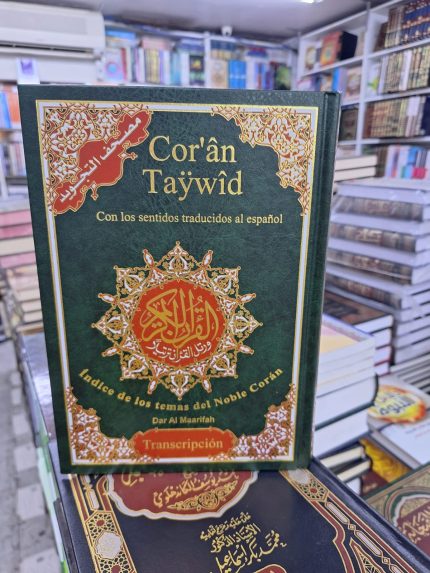 كما يتضمن نسخة بالحروف اللاتينية (Transcripción) تساعد القارئ على قراءة الآيات دون الحاجة إلى إتقان اللغة العربية، مما يجعله مصحفًا مثاليًا للمسلمين الجدد أو المتعلمين الجدد للقرآن الكريم.