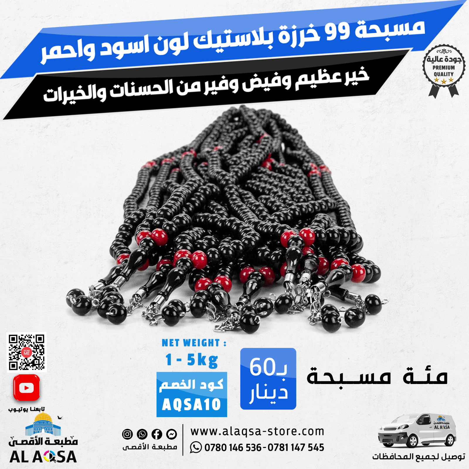 مرحبًا بكم في متجر الأقصى, المتجر الإسلامي الأول على الإنترنت, لتوفير مجموعة واسعة من المنتجات الإسلامية عالية الجودة. اكتشف مجموعة متنوعة من العناصر الإسلامية، مثالية للاستخدام الشخصي أو كهدايا رائعة. مع نظامنا البسيط للدفع عبر الإنترنت و خدمة التوصيل في نفس اليوم، التسوق للمنتجات الإسلامية لم يكن أسهل من ذلك استكشف مجموعتنا، التي تشمل القرآن الكريم، المصحف الناطق، سجاد الصلاة، المسابح بجميع أنواعها, من المسابح العادية, و المسابح الإلكترونية إلى أول خاتم تسبيح ذكي في العالم. يمكنك أيضا شراء الإكسسوارات الإسلامية ، حامل القرآن اونلاين من موقعنا ، كما يتوفر لدينا العديد من المنتجات التجارية مثل الدفاتر التجارية والاختام والكروت الشخصية والملفات وغيرها ، اختبر مزايا الراحة في التسوق لكل احتياجاتك الإسلامية في مكان واحد من متجر الأقصى.