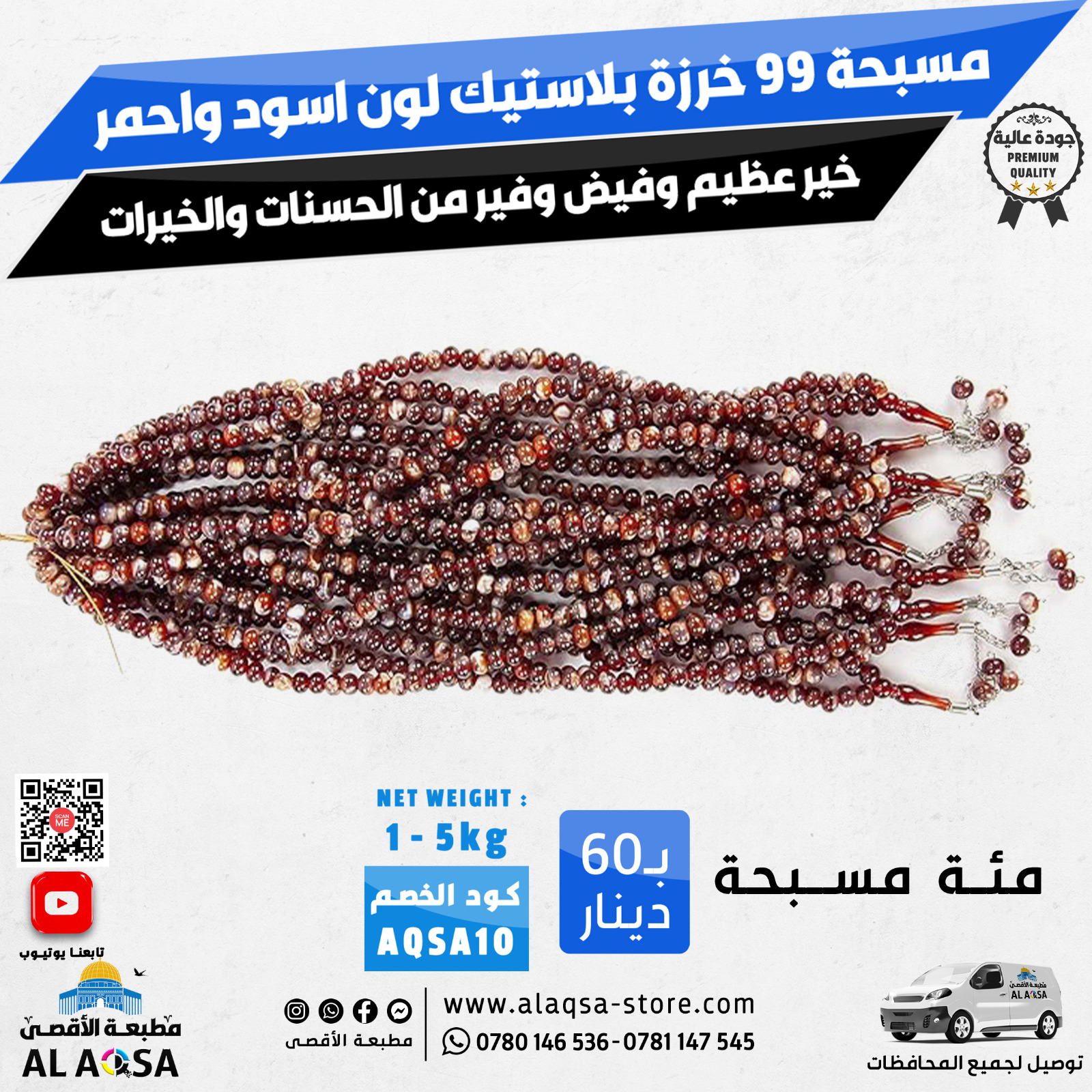مسبحة صلاة مكونة من قطع من 99 خرزة اسلامية للتسبيح و التسبيح والتسبيح سبحة اسلامية للصلاة 100 مسبحة ب60 دينار